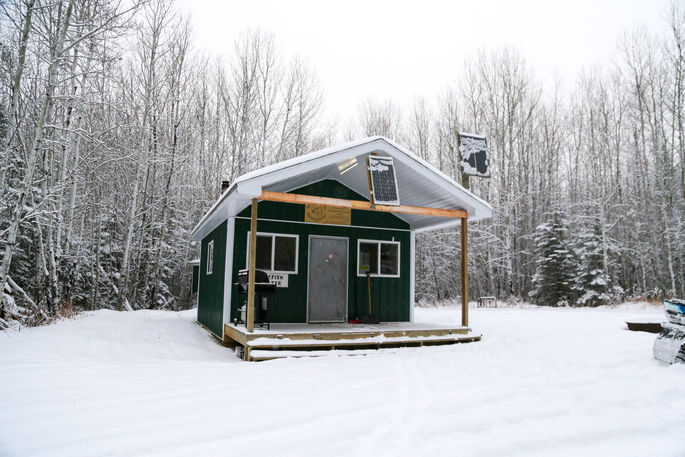 After a few years, it was time for a facelift - it got a coat of paint, solar lights and a new stove. Then after a few more years, we had raised enough money to do a totally new Whitefish warm-up shelter. With lots of donated materials and hours of labour we now have a new, fully insulated warm-up shelter.